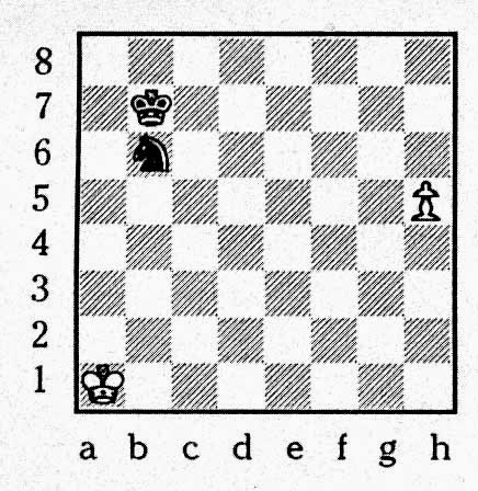 Example C: The tables turn; black's knight moves so slowly that after 1. h6, the pawn cannot be prevented from reaching the eighth rank and being promoted. If black has a bishop on b6 instead of the knight, he could answer 1. h6 with 1. . . . Bd4+, when the bishopwould control the crucial square h8.
